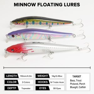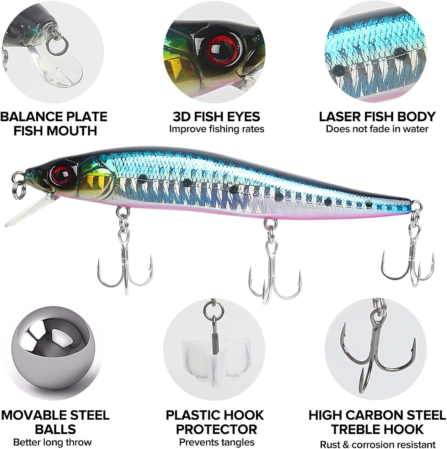 🐟【3 Hooks for Surface Lures】: This lure comes with 3 hooks, each made of high carbon steel, rust-proof sharp treble hooks with strong puncture ability and durability, the hooks come with a plastic protective sleeve for safer storage after use.