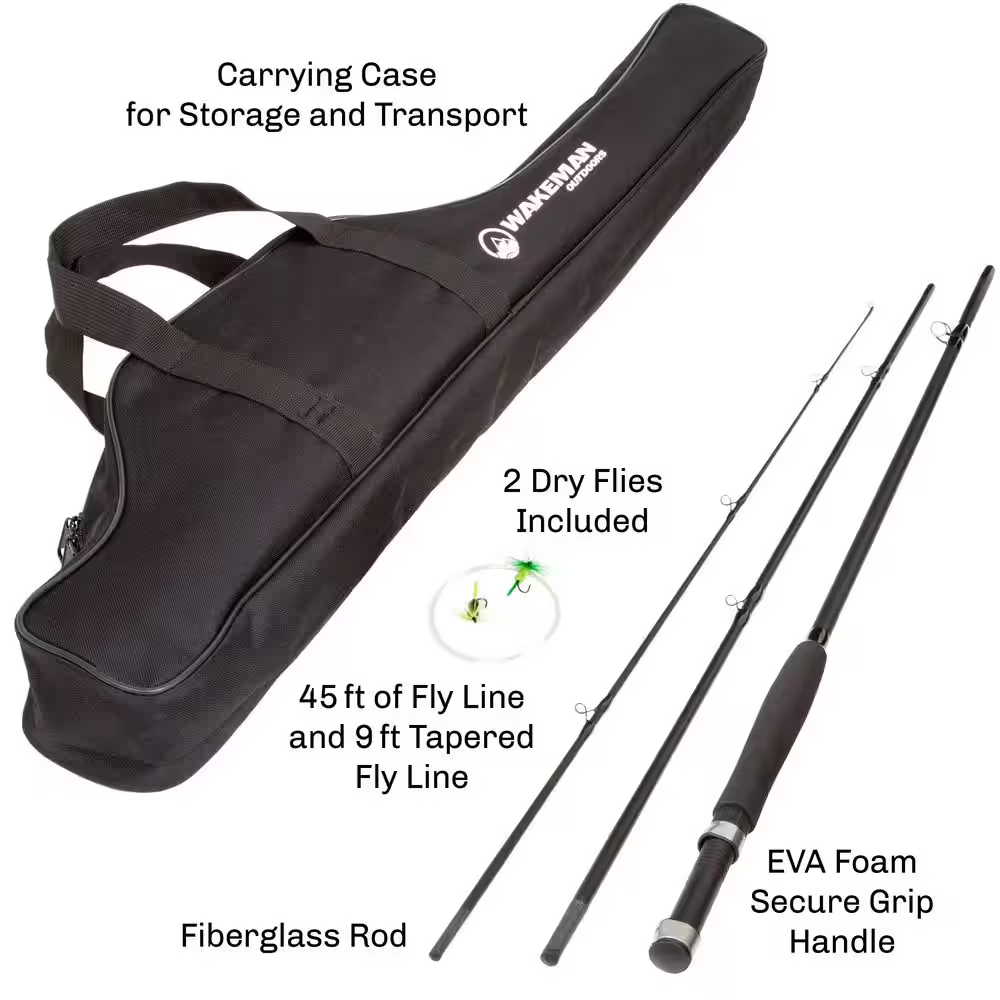 Youth and Adult anglers alike will learn the technique of fly fishing with this Charter Series Fly Fishing Combo Kit from Wakeman Outdoors! This starter kit comes complete with everything you need to get rigged up and on the water, including an 8-foot three piece fly rod, graphite reel, fly line, tapered leader, and two flies. This easy casting 6/7 weight rod comes with suggested techniques to get started on fly fishing. This fly fishing combo kit is an excellent gift that is sure to help make wonderful memories on the water!